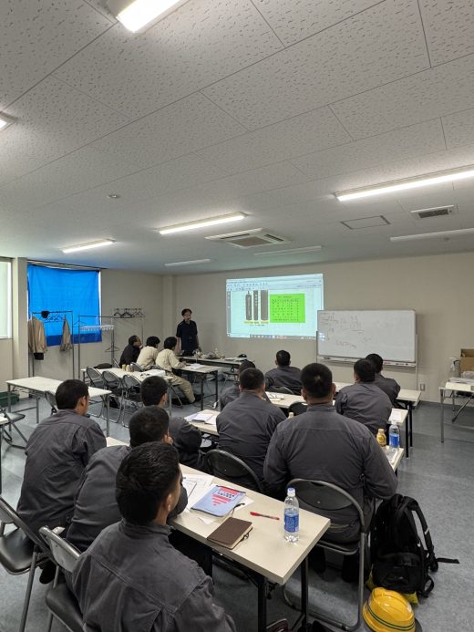 学科では、通訳の先生の言葉を元にいろいろなガスの勉強や溶接の仕方について学習しました。