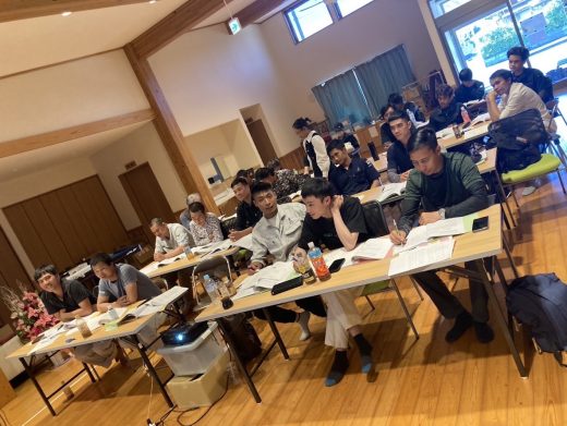 ベトナム、フィリピン、インドネシアから、日本語にまだ慣れていないいない技師の方々が通訳の人と一緒に早朝から頑張ってられました。